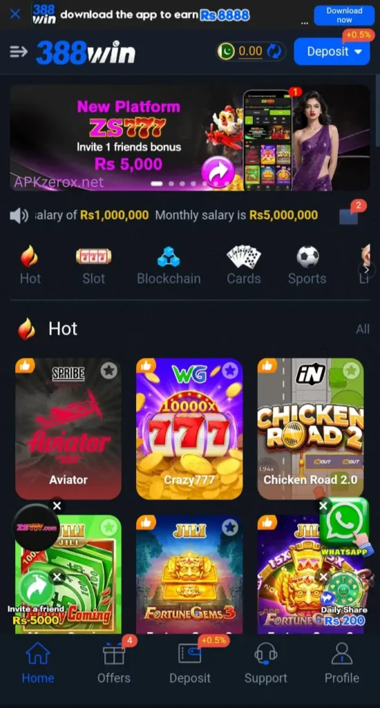 The 388Win Game is an official online earning platform especially designed for Pakistani casino lovers. This platform mainly focuses on Pakistani users. The purpose behind creating this application is not just to entertain its users but also to provide an earning platform from which they can earn real money online while playing some simple games.