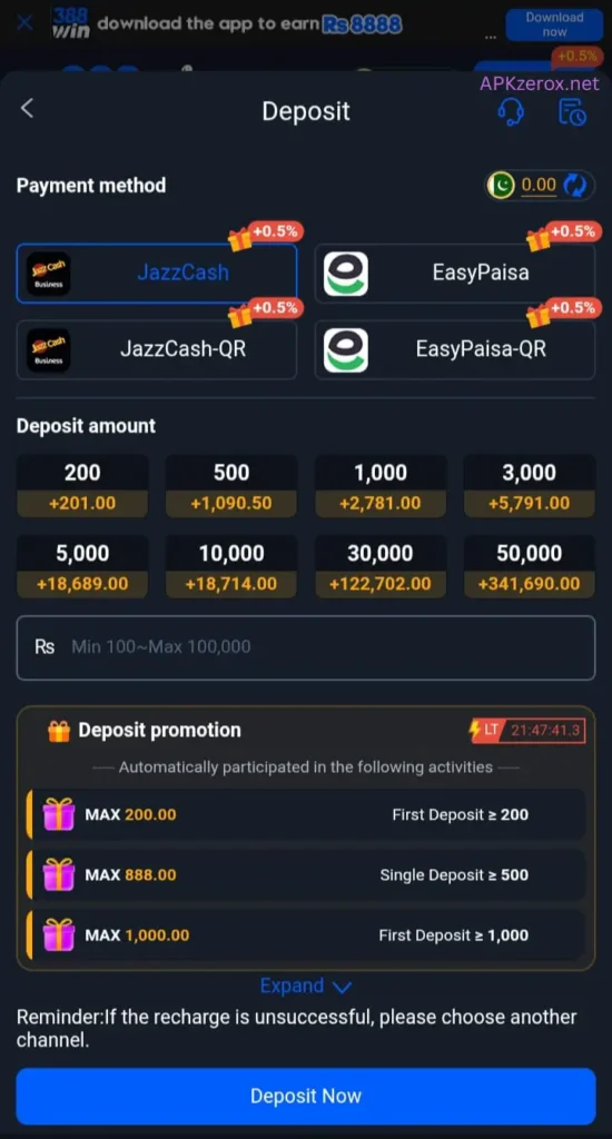 The 388Win method of depositing and withdrawing money through local payments, such as using Jazzcash, Easypaisa, and the bank system.Available Games in 388Win