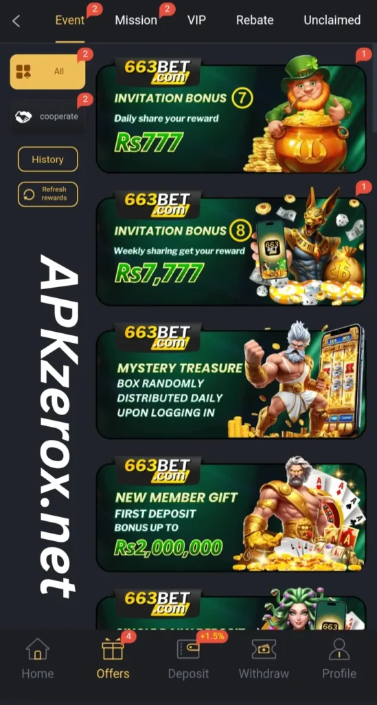 The 663BET is an engaging online gaming application that provides both entertainment and earning potential to its users, as online gaming is trending all over Pakistan, especially those that provide earnings as well to their users. It is a mobile application where you can play exciting casino-style games, card games, and other mini games. There is a great opportunity to earn real money, and users can deposit and withdraw through local methods that are available to users. Also try BET877 Game.