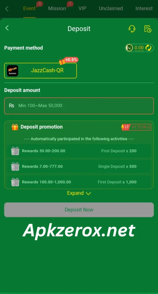 - Go to the deposit section.
