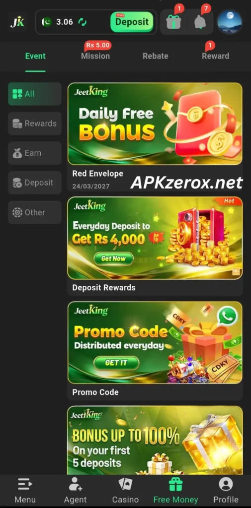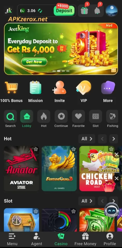 The Jeetking is an online earning platform especially built for Pakistani users who are really interested in earning real money online. This application offers a variety of games; through playing, users can earn unlimited bonuses and daily login rewards. And easily withdraw from their accounts through local payment methods. While using a high-security system, this makes it one of the safest apps and gives a safe gaming experience. To download this app, visit our official website and download it from there. Registration and all guidance are all mentioned below. Download it now and start earning.