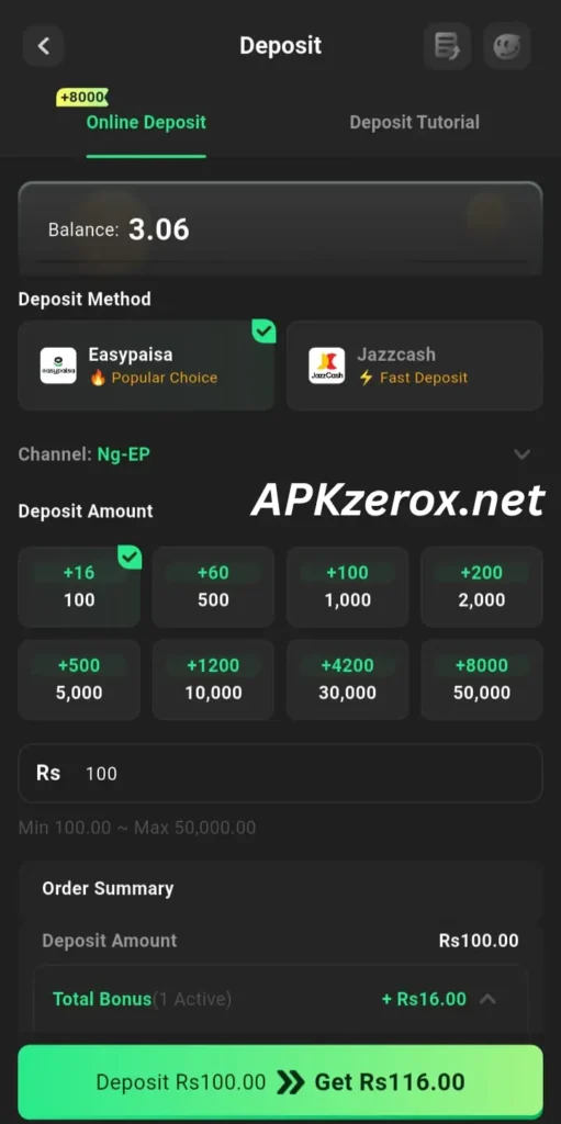 The withdrawal process is very simple; use local payment methods like Jazz Cash or Easy Paisa to withdraw your money to your account.